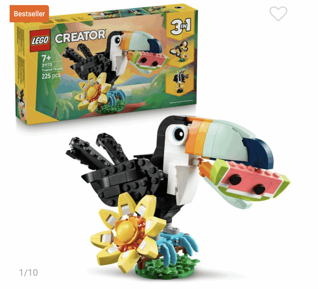 🐦 2. LEGO Creator 3 w 1 – Dzikie zwierzęta: Tropikalny tukan